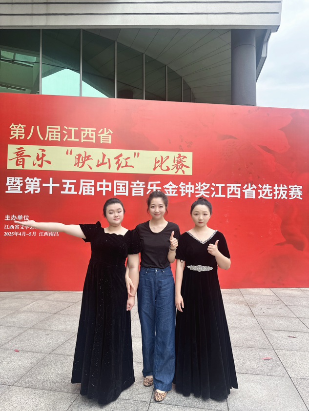 2025年5月7日,在比赛激烈的角逐中,学院选手谢文静、徐雅菲同学在比赛中崭露头角,荣获第八届江西省音乐“映山红”比赛暨第十五届中国音乐金钟奖江西省选拔赛三等奖。