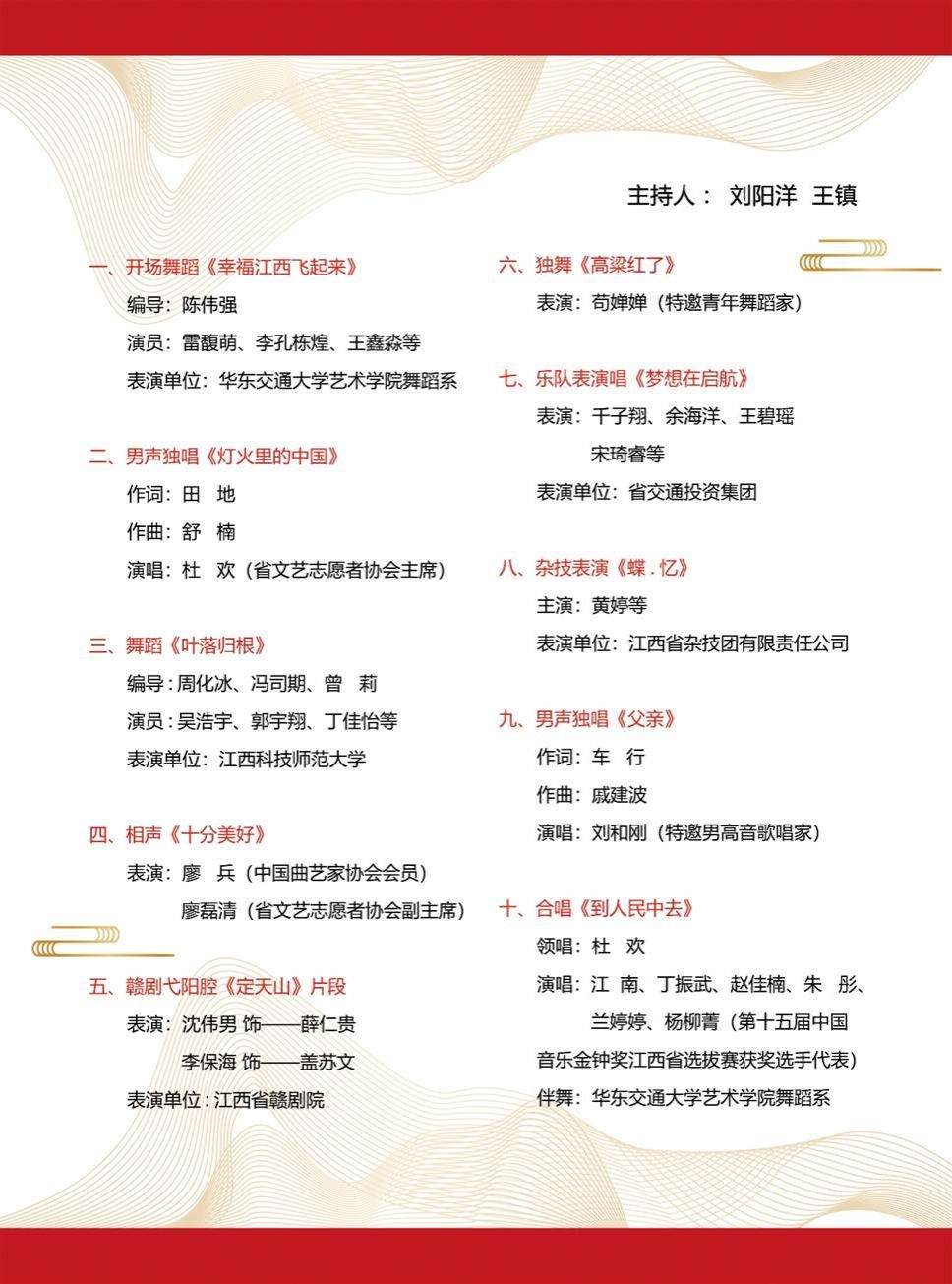 本次演出活动旨在通过文艺志愿服务的形式,深入基层,贴近人民,用文艺的力量传递党的声音和关怀,丰富基层群众的精神文化生活,展现新时代文艺工作者的责任与担当。中国文联文艺志愿服务中心相关领导,省委宣传部、省文联领导,省国资委、华润江中制药集团有限责任公司等相关单位领导出席此次活动,共同见证这一文艺盛会。