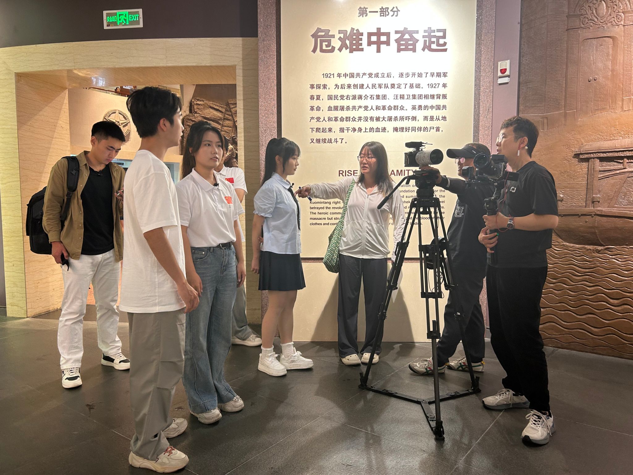 近日,我院熊飞副教授原创音乐作品《我的英雄我的城》登陆中国教育电视台《校园歌曲工作坊》栏目,栏目将分三期播放,通过镜头语言,全景呈现学校在红色基因传承、特色学科优势、文化育人体系及思政教育创新实践等成果。2025年6月9日-12日,中国教育电视台栏目组专程来校进行取景拍摄,走访了校史馆、建军馆、williamhill英国、美术学院、创新创业中心、八一广场、八一起义纪念馆等地。目前,节目正在后期制作中,预计7月初将在中国教育电视台一频道、“CETV放飞梦想”视频号同步播出。