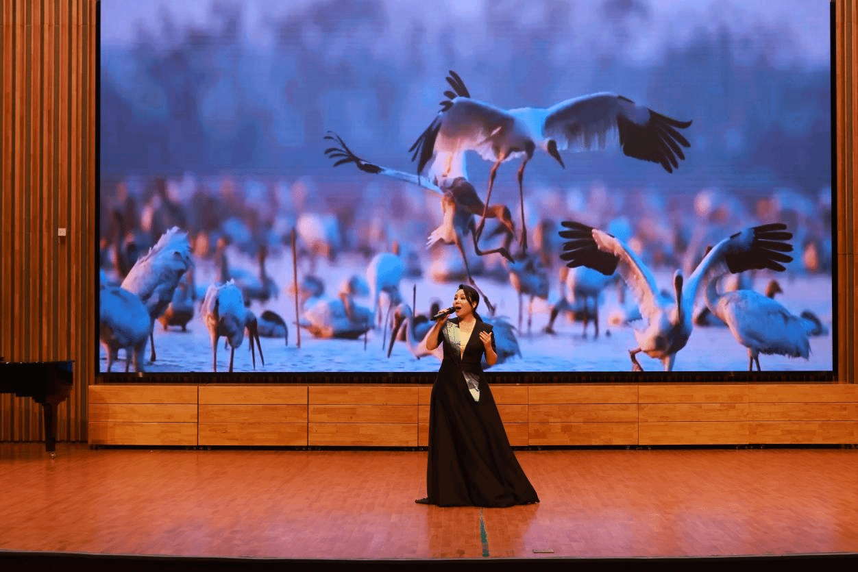程凌昭献唱《好一副白鹤图》。作品以群鹤飞舞,美美与共为题材,歌中有画,歌景相融。