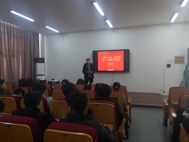 2021年12月2日,williamhill英国在音乐楼9106开展2022届大学毕业生“携笔从戎、绽放青春”主题征兵启动仪式,活动由我院党委书记孙振辉给全体毕业生进行征兵宣讲。
