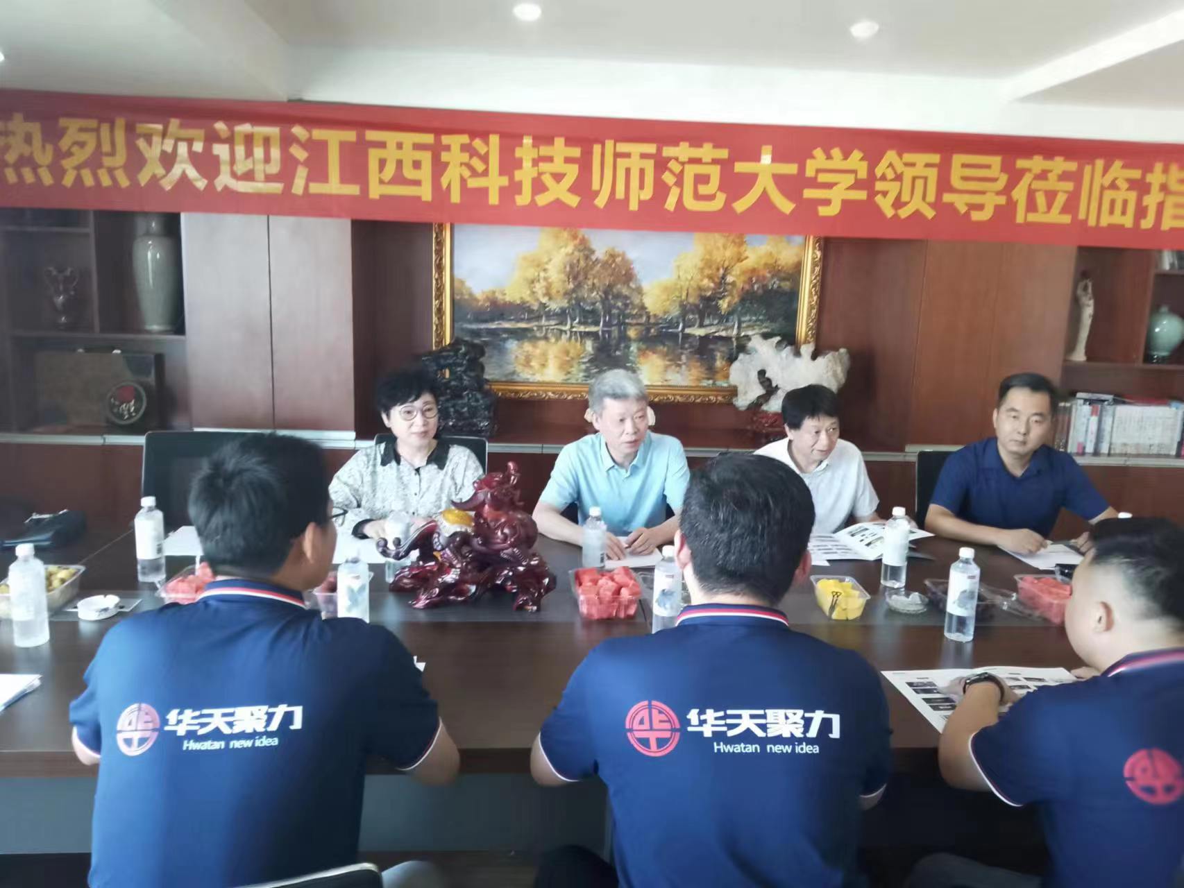 南昌华天聚力企业营销策划有限公司董事长周召林对母校领导一行的到来表示欢迎,并介绍了近年来公司的发展状况、业务领域以及人才需求等情况,表达了对吸纳优秀毕业生的期望。黄赣华书记就希望能全面加强院企对接联络,在人才联合培养和学生就业等方面开展更宽领域、更深层次的合作,力争实现互惠共享、互利共赢。