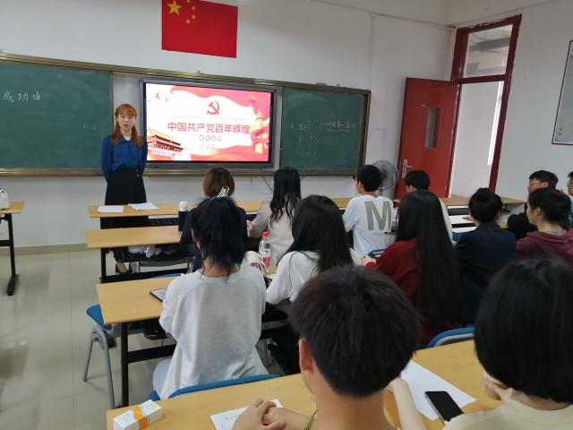 贺亚莹以《中国共产党百年辉煌》为题,以百年党史为主线,从开天辟地完成救国大业、改天换地完成兴国大业、翻天覆地推进富国大业、惊天动地推进强国大业四个部分,系统梳理了我们党从建党初期带领人民争取民族独立到实现人民解放、国家富强不同阶段的历史成就,呈现了党的不懈奋斗史,带领在场同学从党苦难辉煌的历史中感受党的伟大。