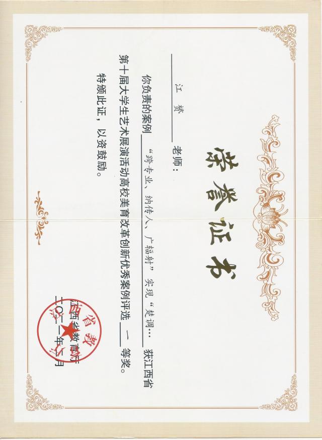 5月11日至13日,全国第六届大学生艺术展演活动在四川省成都市举行。我院江赟老师的“‘跨专业、纳传人、广辐射’实现‘楚调唐音’歌吟高校艺术传承创新”案例在全国31个省市自治区以及新疆生产建设兵团、香港特别行政区、澳门特别行政区共198所高校选送的305个案例中脱颖而出,荣获全国第六届大学生艺术展演高校美育改革创新优秀案例一等奖,并受邀做高校美育改革创新优秀案例专题报告。