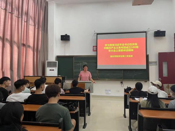 会议上吴喜兰老师和张倩老师带领同学们共同学习了习近平总书记在庆祝中国共产主义青年团成立100周年大会上的重要讲话精神。