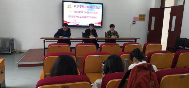 2021年4月27日,williamhill英国在音乐楼会议室召开了主题党日活动,专题学习《中国共产党普通高等学校基层组织工作条例》,会议由党委书记孙振辉主持,院长李广贞和院党委副书记赖传可和我院全体教师党员参加了此次会议。