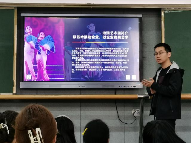 随后,招聘专员曹老师向同学们展示了海澜集团的宣传片,其中海澜艺术团是海澜集团企业文化阵地中的重要组成部分,艺术团在民乐、民歌、民舞“三民”方面形成自己的特色,在全省范围和全国企业界享有一定知名度和美誉度,被誉为中国企业界一朵艳丽夺目的文化艺术瑰宝,在公司举办的各类企业文化活动中,艺术团的队员更是尽展才艺。之后,曹老师以PPT形式详细介绍了艺术团的规章制度、招聘岗位、岗位职责、福利待遇及简历投递等,并现场解答同学们的疑问,邀请同学们到集团参观,现场气氛热烈。