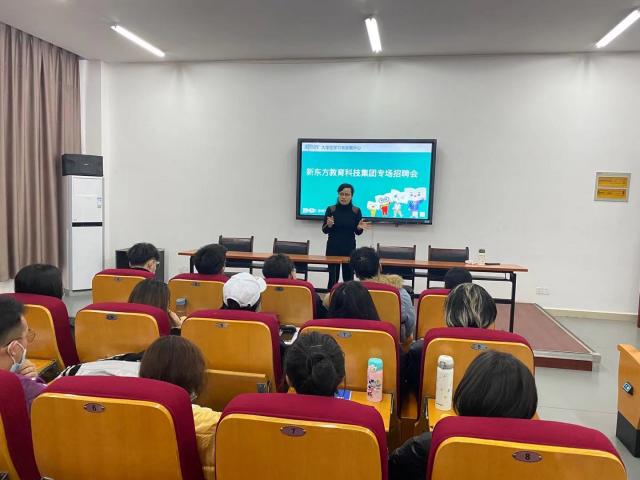 为了拓宽毕业生的就业渠道,于2021年3月8日下午三点半,在williamhill英国9106会议厅准时展开了新东方教育科技集团有限公司招聘会。新东方教育科技集团讲师邹丽担任本次招聘主讲人以及面试官,williamhill英国部分大四学生积极参与了本次招聘会。